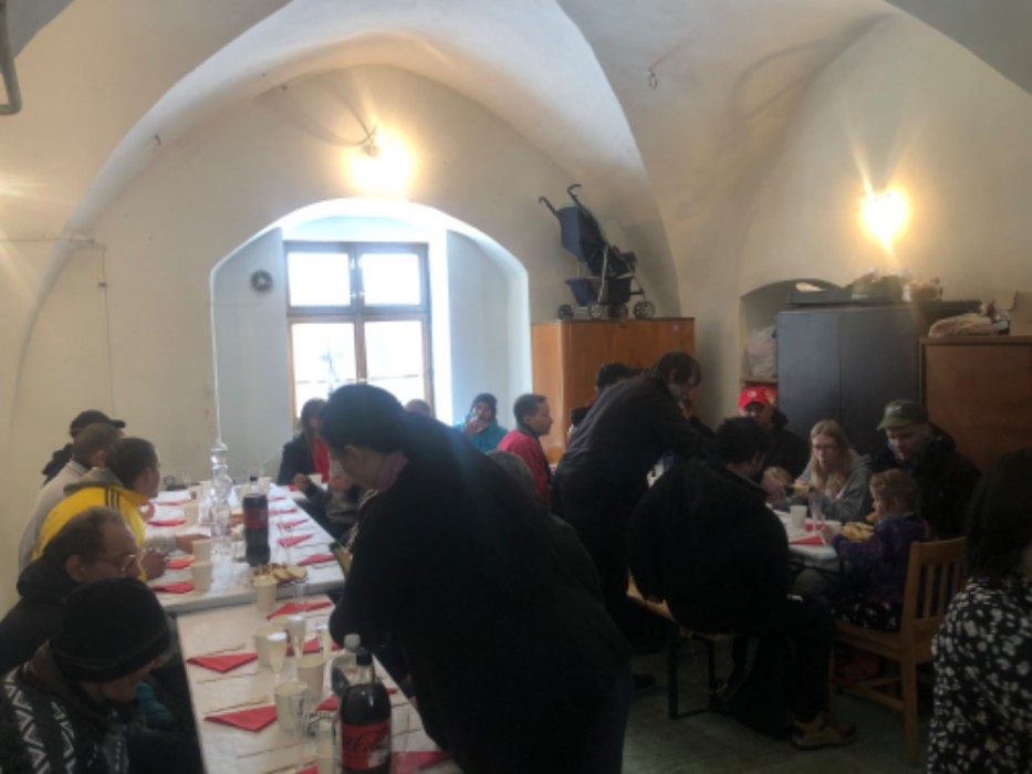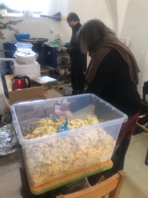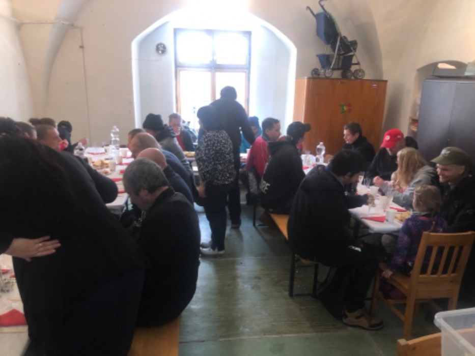 Vánoční oběd pro lidi bez domova na svatojakubské faře.